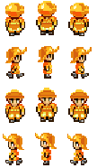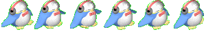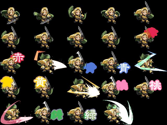 如果影格數少且為連續動作,將之繪製在同一個檔案上,在播放時只繪製圖檔中的某個區域,這必須透過運算來達成,所以在程式邏輯與運算上必須花費一些精神,不過檔案管理上會比較方便,例如將所有的影格繪製在下面同一個檔案: