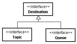 在JMS當中,頻道是用Destination這個介面來定義,在 訊息(Message)觀念 中提及,訊息服務有出版-訂閱(Publish-Subscribe)與點對點(Point-to-Point)兩種模式,而頻道分為主題與佇列,因此,Destination有兩個子介面Topic與Queue來分別代表。