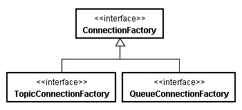 根據兩種模式的不同,ConnectionFactory有TopicConnectionFactory、QueueConnectionFactory兩個子介面: